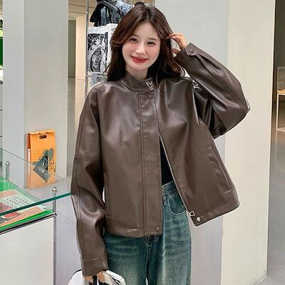 本日の限定商品レザージャケット 2024春秋新作 高度なセンス バイカージャケット ジャケット レディース ノーカラージャケット 韓国 ジャケット ロングジャケット 秋服 レディース