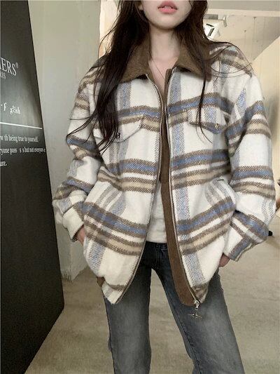 本日の限定商品ジャケット レディース ノーカラージャケット 韓国 ジャケット ロングジャケット 秋服 レディース ツイードチェックジャケット 高度なセンス 秋冬新作 とろみコート アメリカンレトロジャ