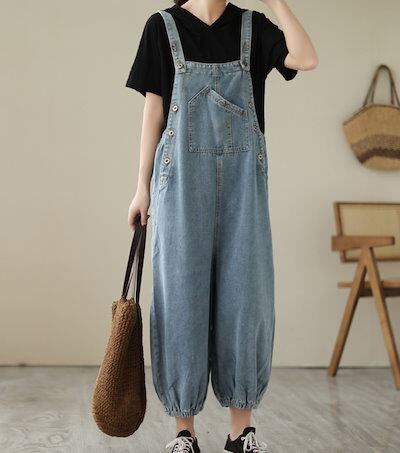 デニムサロペット ビングシルエット オーバオール ロング丈 ボトムス バルーンパンツ オールインワン レディース サルエル サロペット ゆったり デニム 無地 大きいサイズ トップス ワイドパンツ