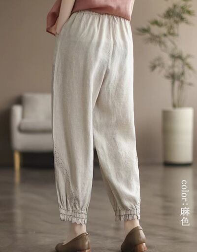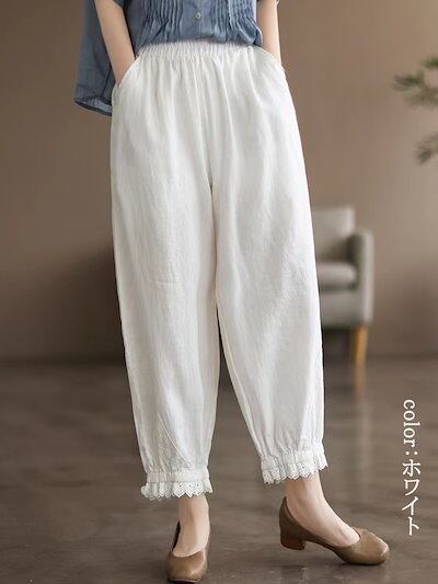 麻 ポケット 綿 テーパードパンツ 春 レディース ナチュラル 夏 ポケット ゆったり 無地 ボトムス バルーンパンツ 体型カバー 大人 カジュアル 春夏 9分丈 綿麻風 ウェストゴム サルエルパンツ