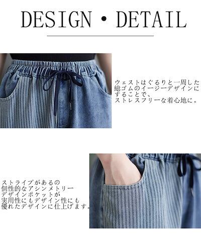 オシャレ デニムパンツ ハイウェスト ゆったり 体型カバー テーパードパンツ ウェストゴム バルーンパンツ ストライプ 秋 紐付き キレイメ 個性的 大きいサイズ サイドポケット レディース 春 夏 | Jeannede ジャンヌデ