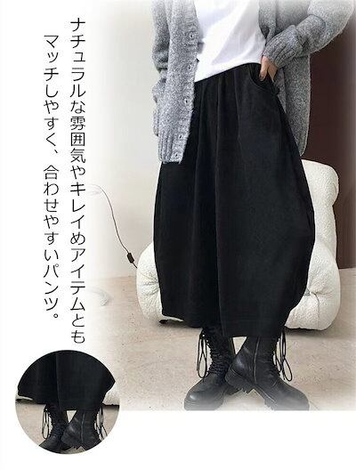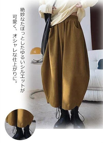 バルーンパンツレディース秋冬ワイドパンツロングウエストゴムコクーンパンツポケット付き脚パンツボトムスゆったりかわいい9分丈大きいサイズ大人黒ブラウンカジュアルズボン無地着痩せ403050