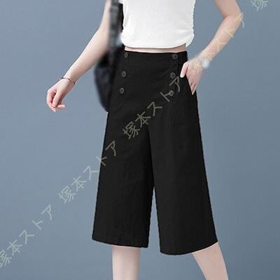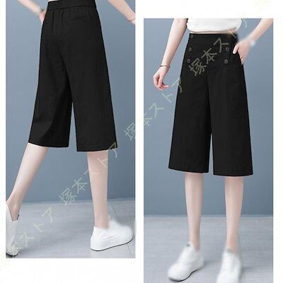 ンパンツ レディース 綿麻 ガウチョパンツ バックゴム ボ飾り 付き ワイドパンツ 春 夏 秋 無地 シン ゆったり 麻パンツ 部屋着 通勤