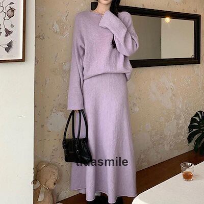 アップ レディース 秋冬 ニット 卒業式 服 母 長袖 上下 セーター スカート アップ ロング丈 オシャレ カジュアル 七五三 ママ