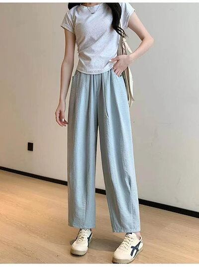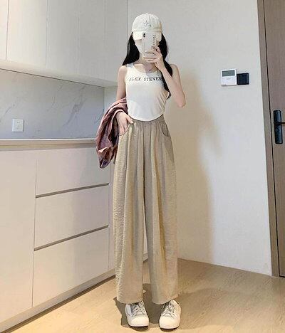 ワイドパンツ レディース エルサルパンツ 無地 タックパンツ 春 夏 薄手 ワイド ガウチョパンツ ウエストゴム イージーパンツ ボトムス 涼しい ゆったり 体型カバー 着痩せ 大人 カジュアル オシ