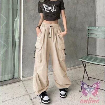 カーゴパンツ ゆったり 女性 サルエルパンツ 九分丈 ズボン ウエストゴム レディース ロングパンツ ミリタリー風 お洒落 レトロ