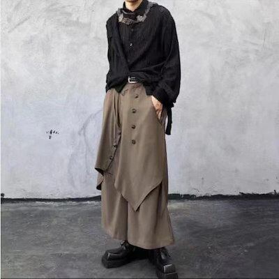 ワイドパンツメンズレディースサルエルパンツゆったりロングパンツ男女兼用アシンメトリー舞台ダンス衣装カジュアルパンツズボン