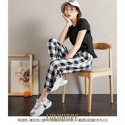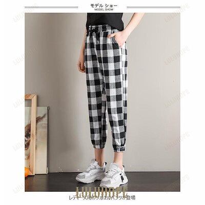 サルエルパンツ 夏 レディース チェック柄パンツ 九分丈 ゆったり カジュアルパンツ ウエストゴム 女性 九分丈パンツ 薄手 レトロ お洒落