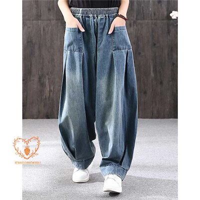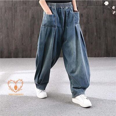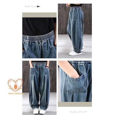 サルエルパンツ デニムパンツ デニム サーカスパンツ レディース ウエストゴム Gパン ガウチョ ワイドパンツ お洒落 ゆったり カジュアル
