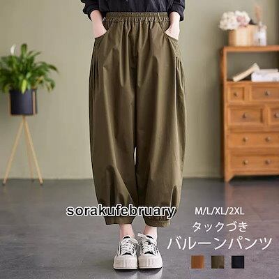バルーンパンツ レディース 夏 パンツ 夏用 ボトムス コクーンパンツ バルーン 9分丈 イージーパンツ ウエストゴム ポケットづき サルエルパンツ 涼しい