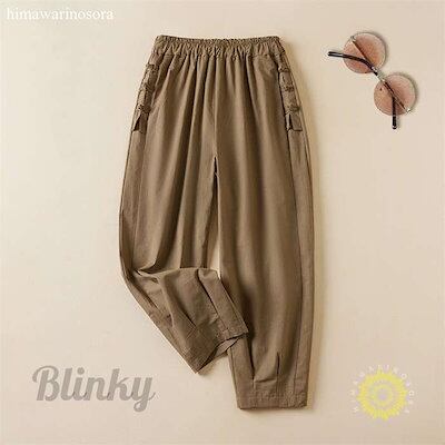 サルエルパンツ リネンパンツ レディース バルーンパンツ 9分丈 夏 春 パンツ ゆったり ポケット付き ワイドパンツ 綿麻 リネン 美脚 コットン ボトムス ズボン