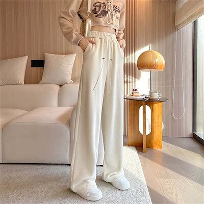 レディース もこもこパンツ ズボン ワイドパンツ ゆったり シンプル ロング丈 ボトムス ポケット 秋 冬 パンツ 部屋着 秋冬 無地 着回し 楽ちん 裏起毛パンツ 暖かい 楽ちん 長ズボン コーデュ