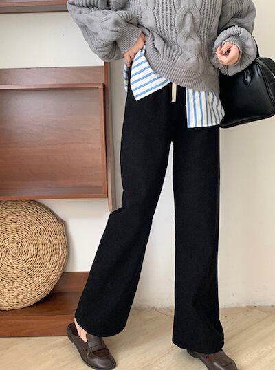 秋冬 裏ボア ハイウエスト ロングパンツ ゆったり レディース ボアパンツ あったかいパンツ ワイドパンツ ズボン コーデュロイ 裏起毛パンツ あったかい ウエストゴム パンツ 裏起毛 無地 ストレー