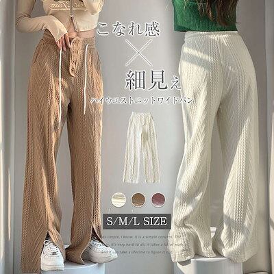 ニット 厚手 ゆったり ロング ニットパンツ ケーブルニット イージーパンツ あったか 秋冬 保暖 裏地付き ポケット きれいめ ワイド ゴム ワイドパンツ レディース ボトムス ハイウェスト パンツ