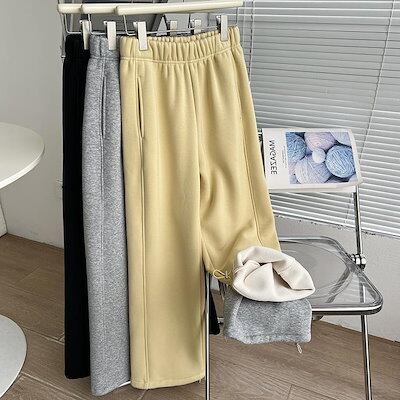 ギャザー2着カジュアルパンツ女性秋冬ゆったり着やせストレートパンツジョイントハーレンパンツ厚手保温ビームガーターパンツ