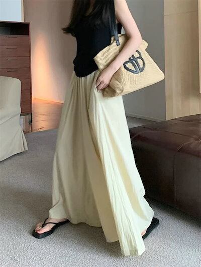 ワイドパンツ ガウチョパンツ スカート見える レディース フレアパンツ 涼しい ロングパンツ 爽やか ウエストゴム バギーパンツ ギャザー 大きいサイズ ゆったり リラックス ビーチ 海 爽やか