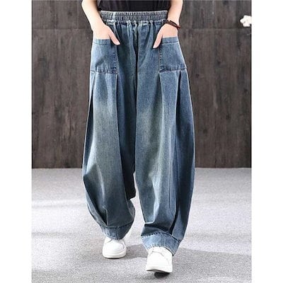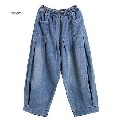 サルエルパンツ デニムパンツ デニム サーカスパンツ レディース ウエストゴム Gパン 一部 ガウチョ ワイドパンツ お洒落 ゆったり カジュアル