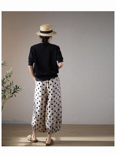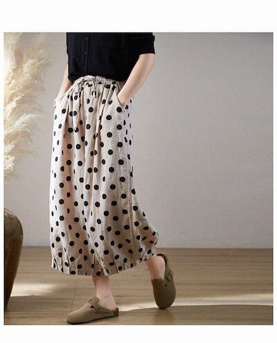 パンツ 綿麻 レディース ボトムス 春夏 ロング きれいめ ボールパンツ ワイドパンツ イージーパンツ バルーンパンツ サーカスパンツ サルエルパンツ ルームパンツ ゆるパンツ 水玉柄 水玉 ゆったり