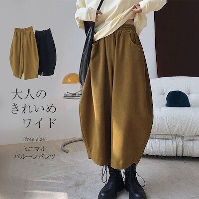 バルーンパンツ 9分丈 秋冬 ボトムス ウエストゴム 春 おしゃれ 20代 大きいサイズ ワイドパンツ レディース ゆったり サーカスパンツ パンツ 体型カバー ナチュラル カジュアル 丸みシルエット