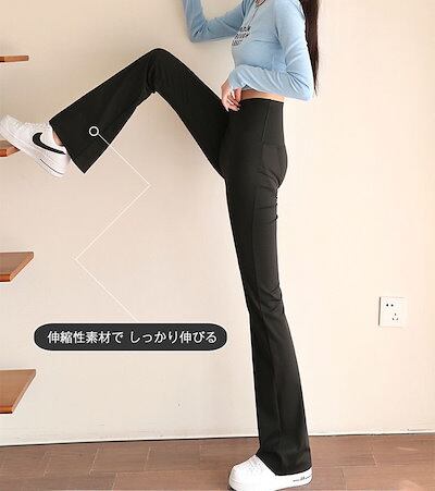 フレアパンツ ブーツカット 美脚パンツ パンツ ヨガパンツ 伸びる ベルボトムパンツ 裏起毛 ウェストゴム ストレッチパンツ 高見え 秋冬 レディース 暖か ワイドパンツ セミフレア ハイウェスト 裏