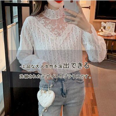 【GUANGYU】新品登場ブラウスレーストップスレディースシャツブラウス春秋冬裏起毛ボア裏ボアインナーハイネック長袖きれいめ立ち襟発表会きれいめ