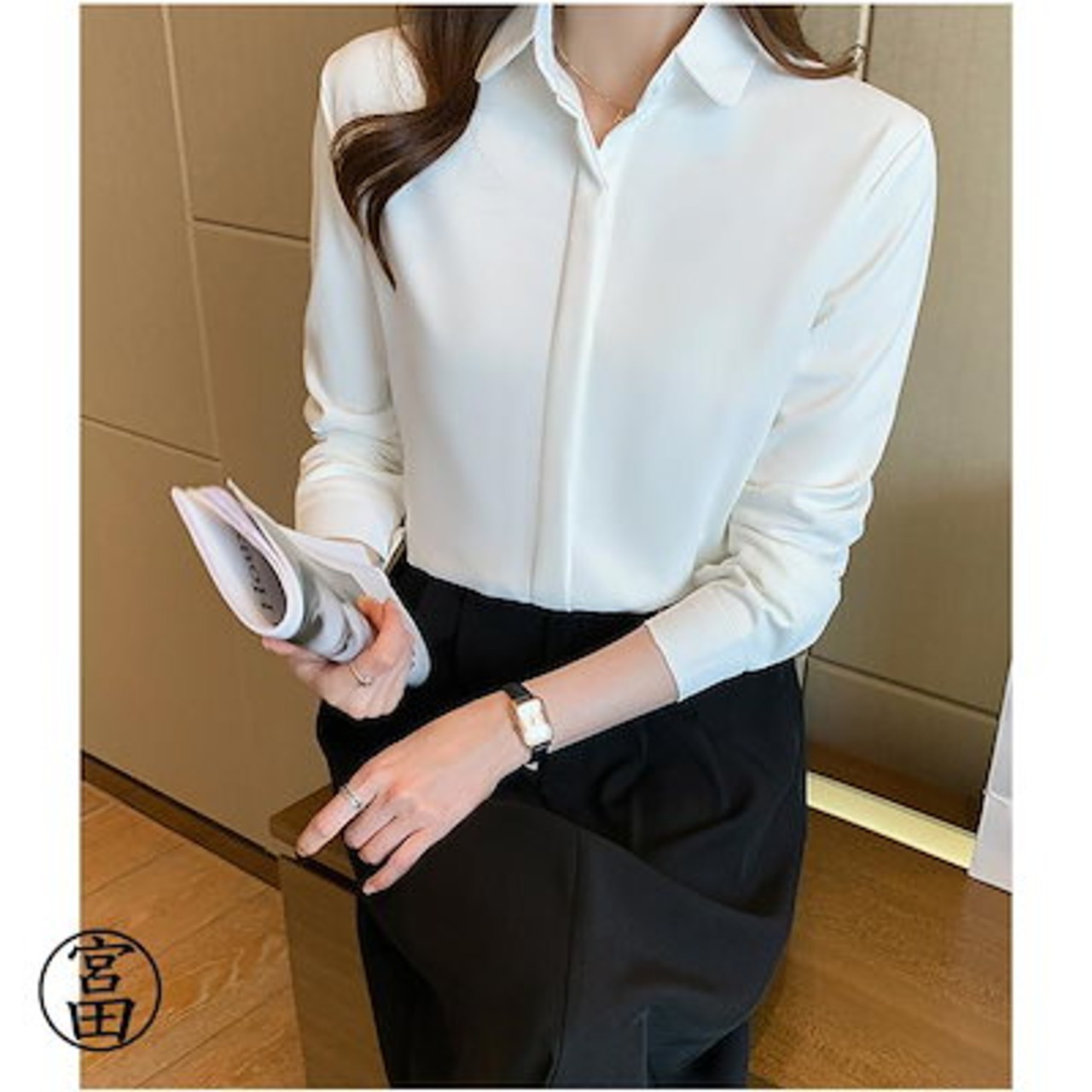 冬の暖かさ!ブラウス 裏起毛 レディース トップス シャツ シャツブラウス ボウタイシャツ 長袖 前開き 隠しボタン 襟 レギュラーカラー ゆったり 上品 通勤 裏ボア 秋冬 | Jeannede ジャンヌデ