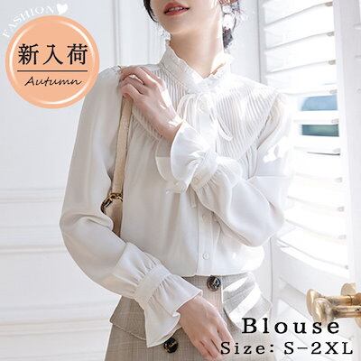 シンプル シャツ インナー シフォン 立ち襟 オフィス 夏 スタンドカラー 30代 通勤 ブラウス リボン付き シワ 50代 春秋 きれいめ レディース 20代 ボウタイブラウス 40代 トップス 大 | Jeannede ジャンヌデ
