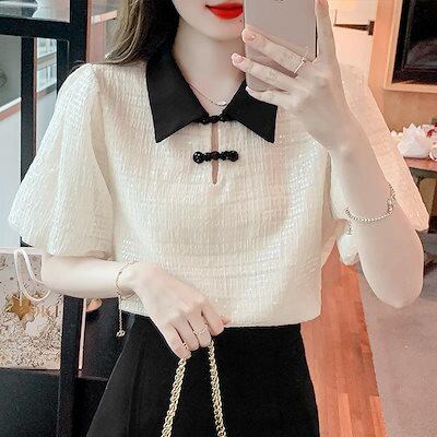 チャイナスタイル古い レディース 気質 透かし彫り シャツ サマー 高級感 人形の襟 オシャレ トップス