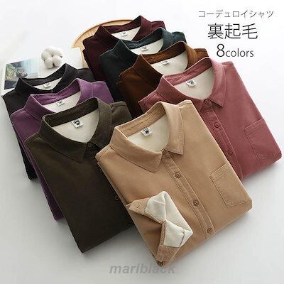 裏起毛 コーデュロイ シャツ レディース 冬 長袖 綿100% 裏ボア トップス ボア付きシャツ 裏起毛シャツ 暖かい 防寒 小襟 襟付き 羽織り カジュアル ルームウ