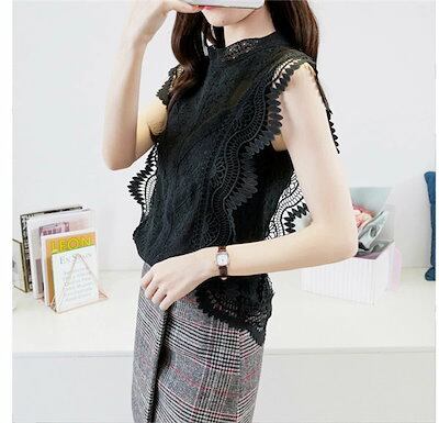 トップス ノースリーブ レース ブラウス レディース 春 夏 レーストップス プチハイネック インナー 立ち襟 レディース 大きいサイズ おしゃれ ブラック ホワイト M/L/XL/2XL/3XL/4