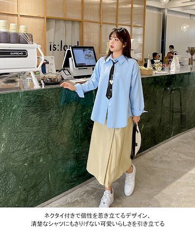 シャツ ブラウス 長袖 レディース 長袖シャツ 大きいサイズ 折り襟 ネクタイ付き カレッジ風 柔らかい ソフト 肌着 アウター トップス 薄手 シンプル 無地 快適 着回し ゆったり フォーマルシー