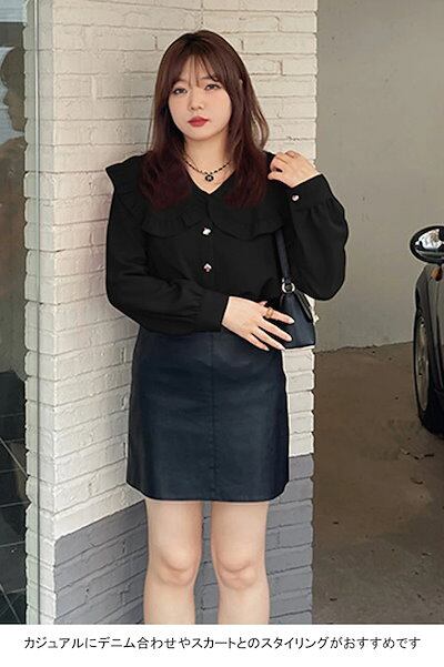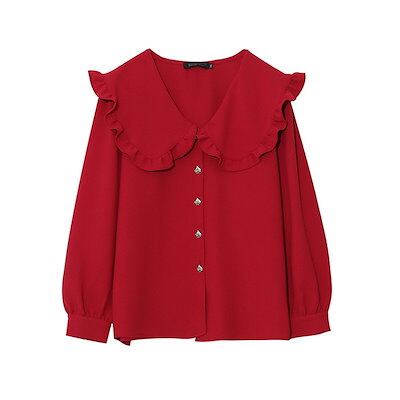 シャツ ブラウス 長袖 レディース 長袖シャツ 大きいサイズ フリル襟 ハートボタン ボリューミー 柔らかい ソフト 肌着 アウター トップス 薄手 シンプル 無地 快適 ゆったり レイヤード 重ね着