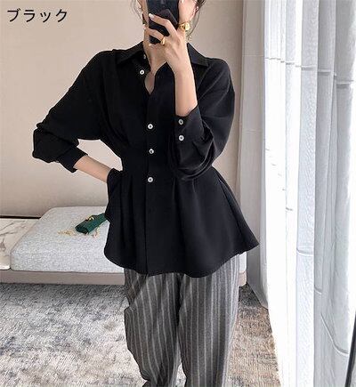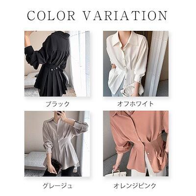 シフォンブラウス レディース 新作 長袖 無地 ブラウス シフォン デザイン感 折り襟 ウエストマーク 前開き ゆったり ボタン シャツブラウス シフォンシャツ フォーマル オフィス 通勤 OL きれ