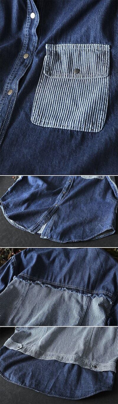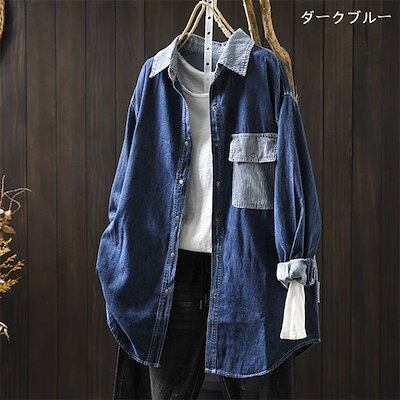 シャツ ブラウス デニム レディース 新作 ストライプ 長袖 薄手 綿 コットン デニムシャツ アウター ジャケット コート 折り襟 体型カバー ゆったり デザイン感 おしゃれ カジュアル 通勤 OL