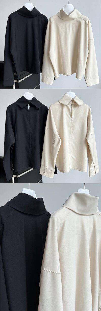 シャツ ブラウス レディース 新作 オフタートル 無地 長袖 トップス プルオーバー 折り襟 ゆったり 上品感 着痩せ デザイン感 レトロ オフィス 通勤 OL 大人 エレガント フランス風 春 秋