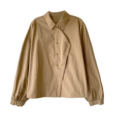 シャツ ブラウス レディース 新作 無地 長袖 アシンメトリー 綿 トップス コート デザイン感 折り襟 春 秋 配色 シャツブラウス ゆったり 着痩せ 体型カバー ボタン カジュアル レトロ おしゃ