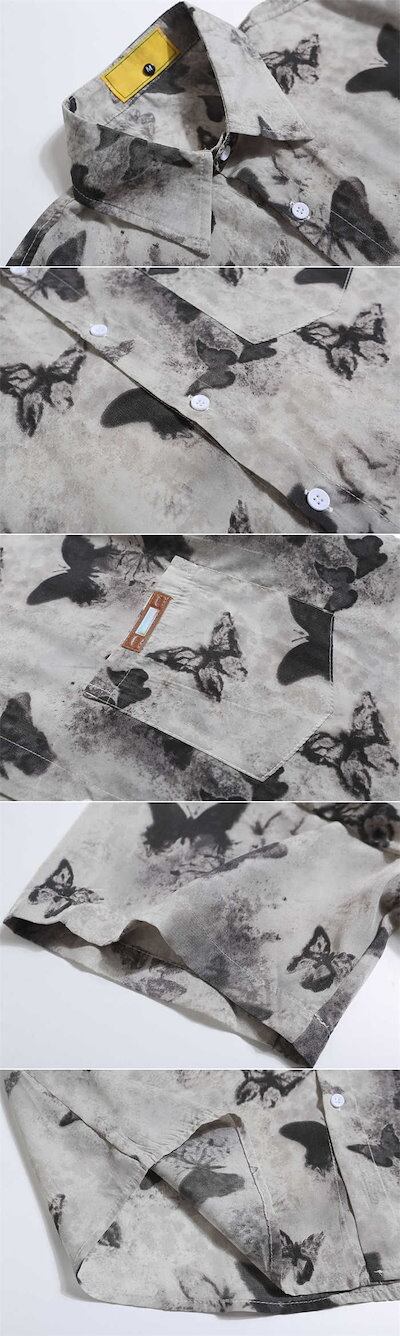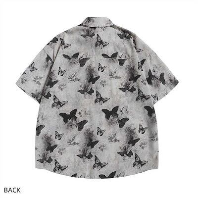 シャツ ブラウス 新作 蝶柄 プリント 半袖 デザイン感 綿 プリント tシャツ Tシャツ トップス 前開き 羽織り 春 夏 立ち襟 レディース ゆったり ボタン 体型カバー 可愛い 着痩せ 着回し