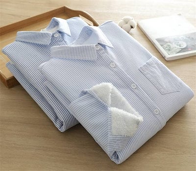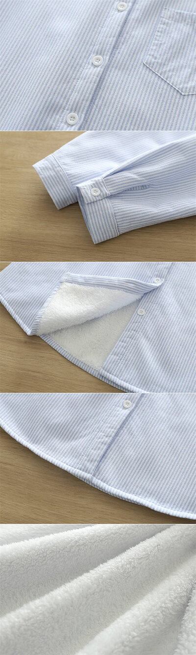 裏ボア シャツ レディース 新作 ストライプ 長袖 裏起毛 ボア 厚手 折り襟 トップス 綿 コットン 前開き 羽織り ボタン ベーシック カジュアル シンプル おしゃれ 防寒 暖かい 大人 かわいい