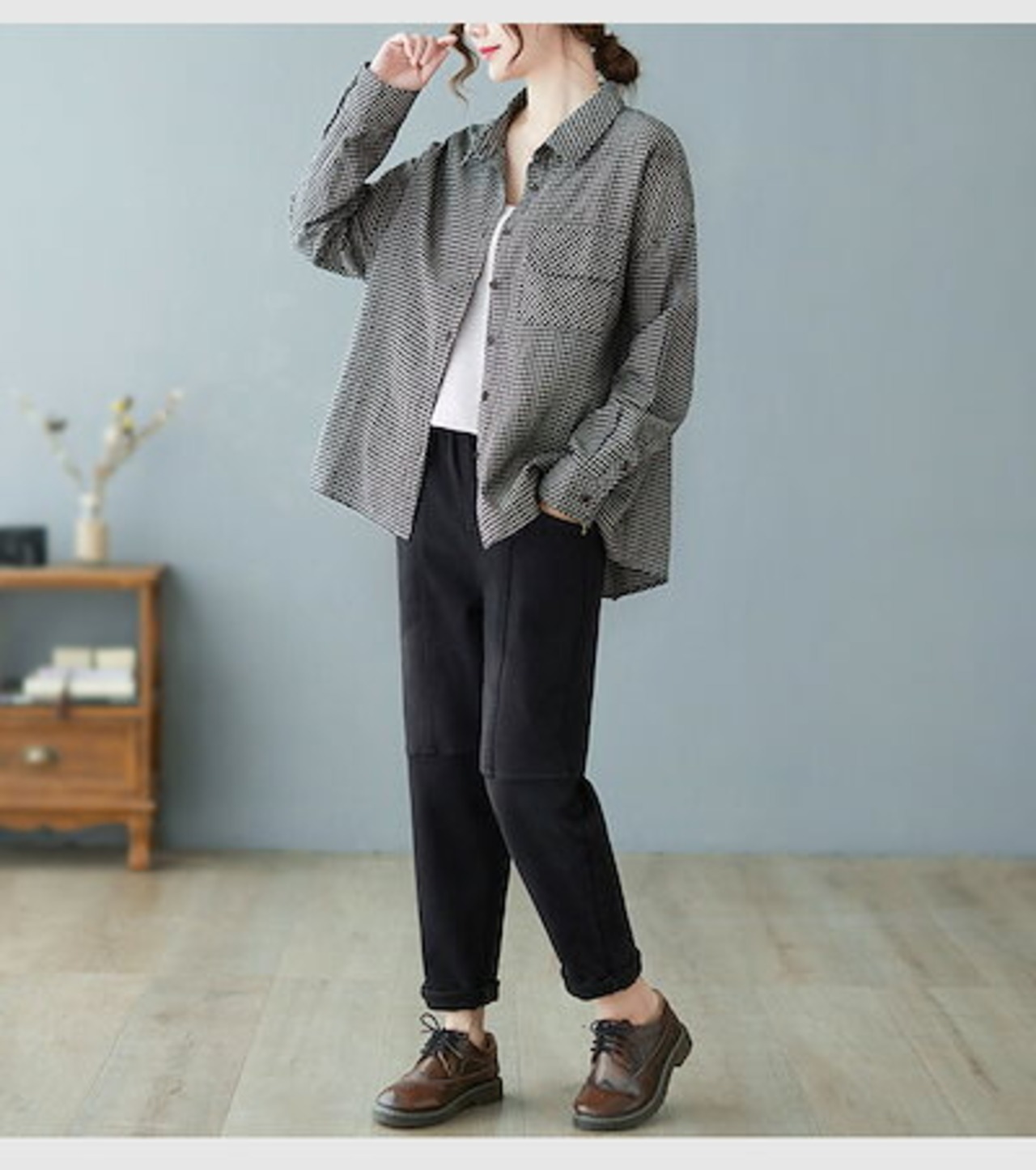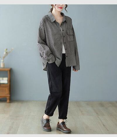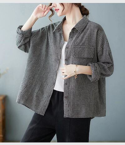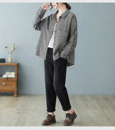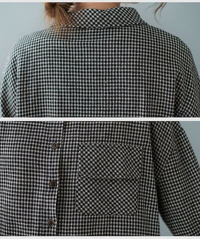 シャツ ブラウス トップス レディース 長袖 チェック柄 長袖シャツ リネン シャツブラウス 秋 コットン ゆったり 大きいサイズ 体型カバー カットソー 重ね着 折り襟 ボタン留め おしゃれ 前開き | Jeannede ジャンヌデ