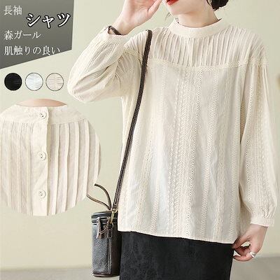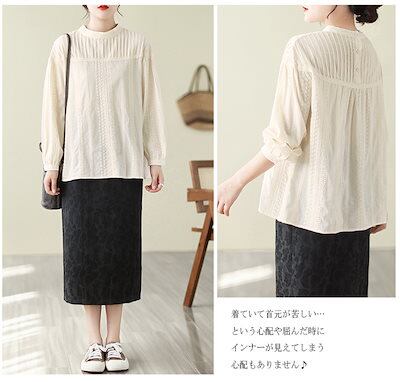 チュニック シャツ 刺繍シャツ 長袖 ブラウス レディース ギャザー 春 夏 シャツブラウス 立ち襟 刺繍 長袖 丸首 後ろボタン 通勤シャツ トップス ゆったり ハイネック 森ガール 吸湿 柔らかい