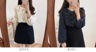 レディース ブラウス 大きな襟 レトロ ドット 水玉 ロングシャツ 長袖 トップス カジュアル 可愛い フェミニン きれいめ 上品 エレガント おしゃれ お出かけ オフィス デイリー 普段着 ネイ