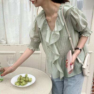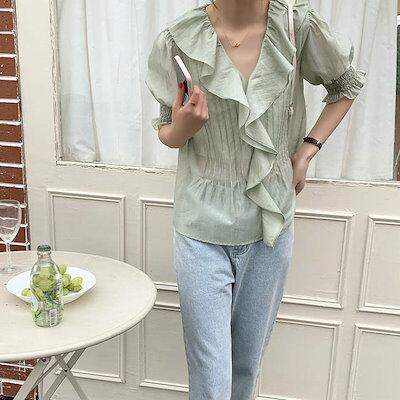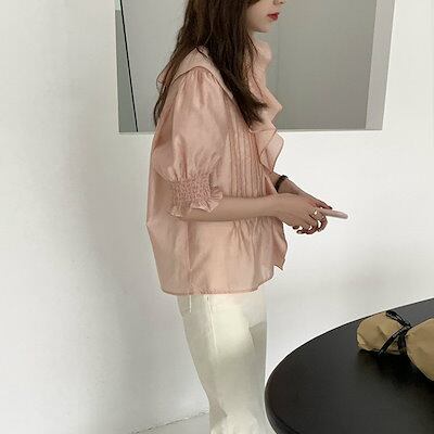 レディース ブラウス 大きな襟 レトロ フリル ショートシャツ 半袖シャツ シアーブラウス デザインシャツ トップス カジュアル 可愛い フェミニン きれいめ 上品 おしゃれ お出かけ デイリー