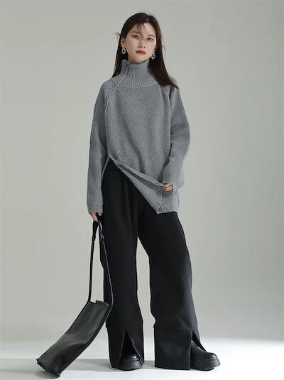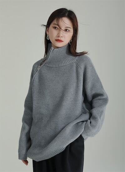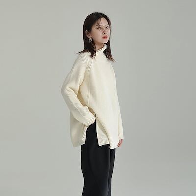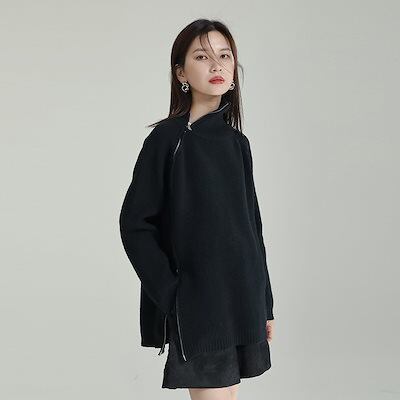 【J.Fashion】 ファスナー ニット 斜め スリット 厚手 ベーシック レディース 冬 ゆる セーター カシミヤタッチ ブラウス メガ割
