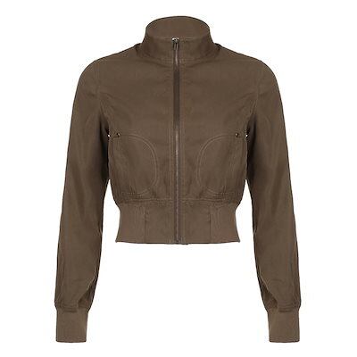 2024夏秋 ブルゾン レトロ かわいい フル トップス ショート アウター レディース長袖 セクシートップスカジュアル韓国 系ファッションお出かけトラックハイネック丈 スタンドネック冬