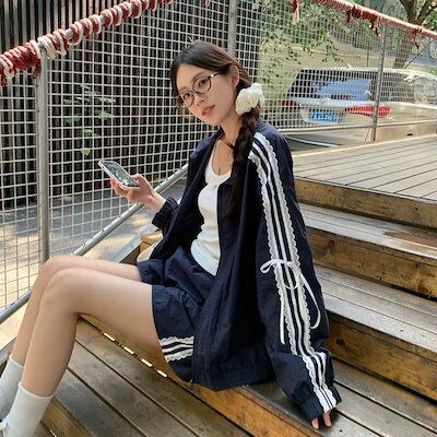 2024 秋 上下2点セット トップス お出かけ 羽織り ショート丈フルラウンドヘム ミニ丈ボトムスサイズストレート系冬 ゆったりレディースハーフスタイルアップシルエットワイドお出かけトラック