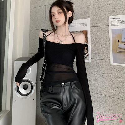 トップス ショート 韓国長袖タイトフィット スクエア クロスネック レイヤード 重ね着丈肌見せ 女っぽ フレンチ Tファッション フェミニン きれいめ 色っぽ プリント レディース系 可愛い おしゃれ