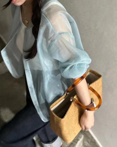 2024 秋冬トップス カーディガン 羽織り 薄手 シースルー 長袖 ボタン ラウンドネック 秋 水色 青 黒 白 おしゃれ かわいい 韓国ファッション レディース お出かけ | Jeannede ジャンヌデ