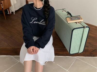 2024秋冬トップス スウェット ラウンドネック 長袖 英語 刺繍 ゆったり 秋 ピンク おしゃれ かわいい 韓国ファッション レディース お出かけ