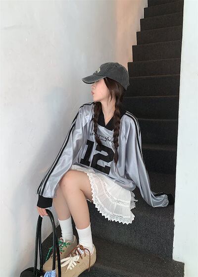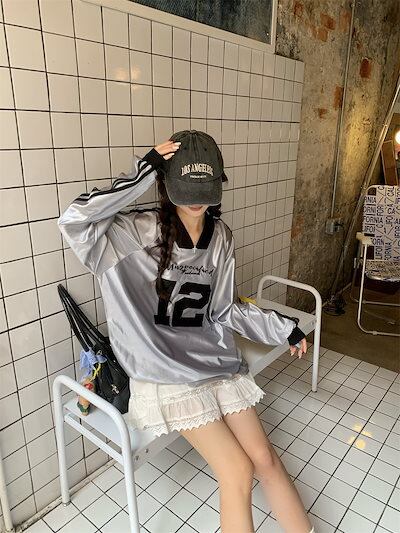 2024 秋冬 トップス 長袖 かわいいラウンドネック Tシャツ レディース 韓国風 12ロゴ衣装ルーズ ゆったりカジュアルおしゃれサイズスリーブシルエットファッション系サイドシャツフットスウエット春