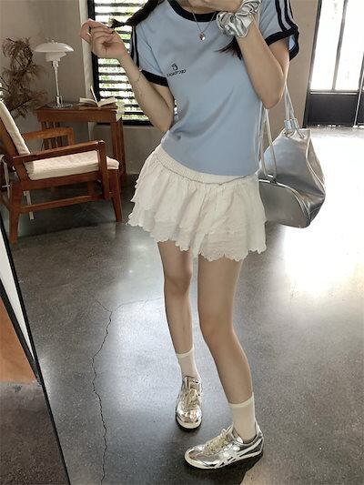2024 春夏トップス 大人可愛い風半袖 Tシャツ 韓国 ラウンドネックロゴスリム かわいいへそ出し ショートおしゃれスリーブカジュアルサイドコーデ丈ファッション系レディースストリートお出かけ T